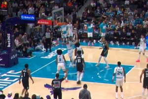 终于获得出场机会!杨瀚森末节2分15秒上场 补篮拿到2分1前场板