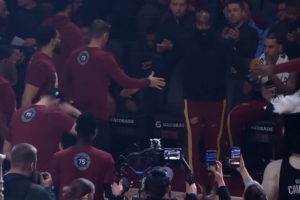 但骑士现场则是按照场上位置来安排顺序:哈登控卫、米切尔得分后卫。