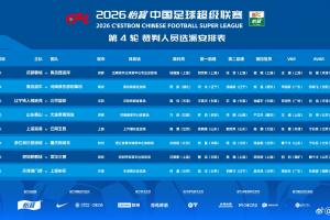 体育资讯04月03日讯 中国足协公布中超第4轮裁判安排,本轮中超裁判仍无麦麦提江和唐顺齐。