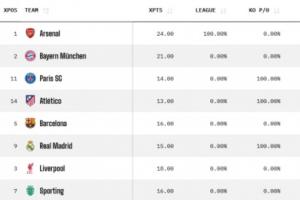 最新欧冠夺冠概率: