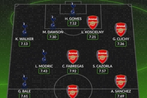 Whoscored自09/10赛季北伦敦德比最佳阵:贝尔、范佩西、魔笛在列
