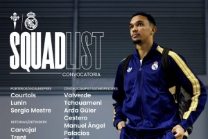 体育资讯3月6日讯 北京时间明天凌晨,皇马将在西甲第27轮比赛中客场对阵塞尔塔,皇马公布了此役的球员名单。姆巴佩、贝林厄姆、阿拉巴、米利唐、罗德里戈、塞巴略斯因伤缺席,赫伊森、马斯坦托诺、卡雷拉斯停赛缺席,阿森西奥回归。
