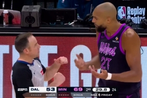 戈贝尔篮下卡位打到巴格利头 后者反击双方吃T&戈贝尔升级为恶犯