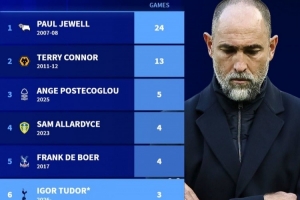 3、波斯特科格鲁,2025年,诺丁汉森林,5场不胜