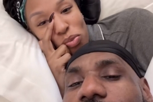 詹姆斯晒出他和妻子萨瓦娜躺在床上的自拍合影,并评论道:“🤣🤣🤣🤣🤣🤣🤣🤣🤣🤣情人节快乐!笑死我了🤎”