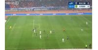 比赛第22分钟,张玉宁挑传,王毅解围踢呲,塞鸟垫射被扑。