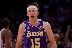 体育资讯2月27日讯 NBA常规赛,湖人上半场以49-49战平太阳。