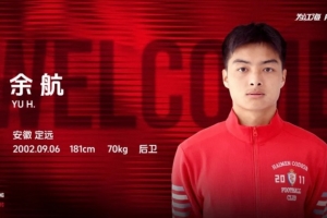余航身体素质出色,视野大局观好,防守能力突出。欢迎余航加入南通海门珂缔缘这个温暖的大家庭,相信他的到来将为球队带来更加稳固后防线。